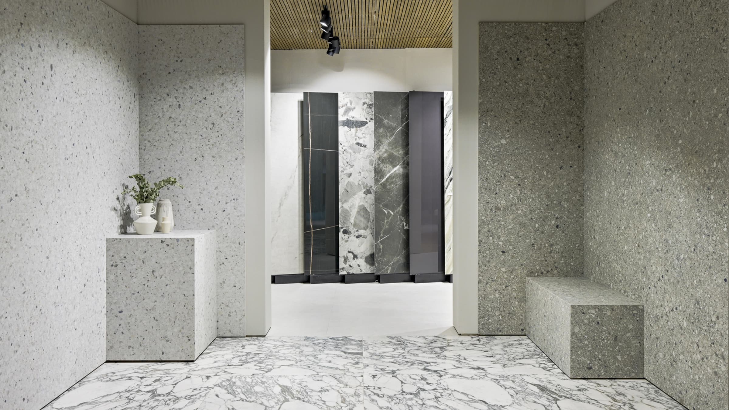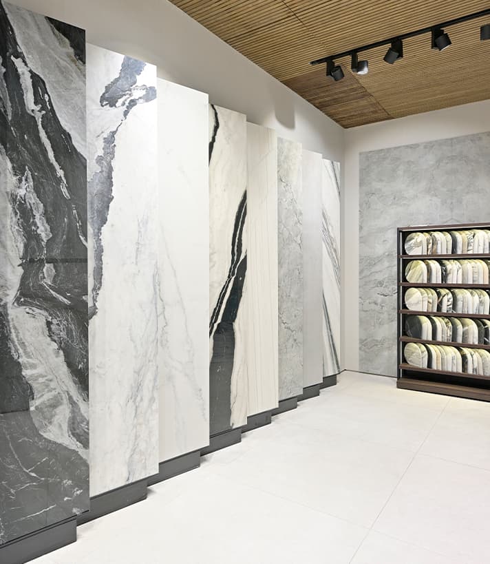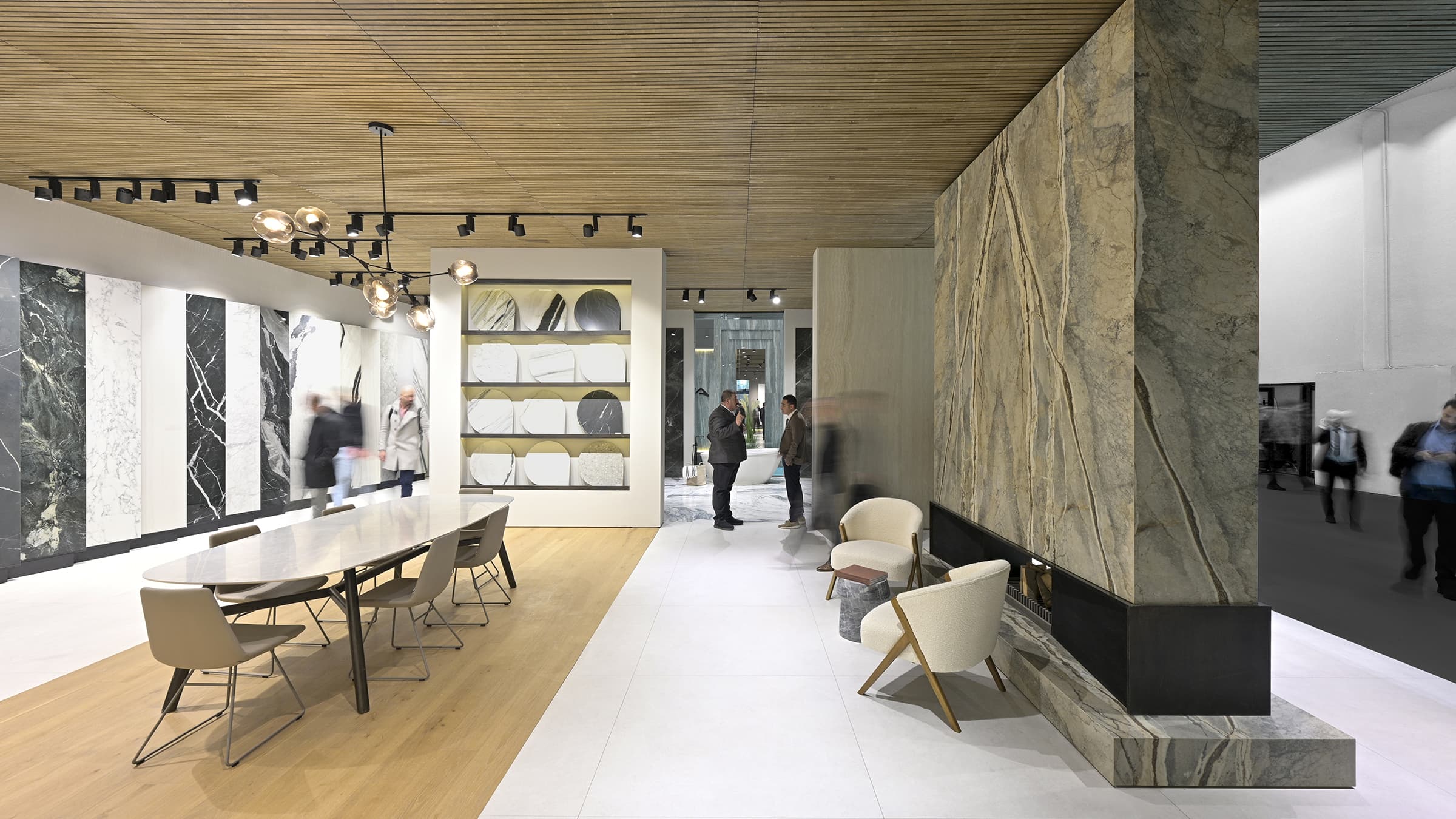 Visitors to our booth experienced the remarkable versatility of our slabs across various decor styles, from sleek Scandinavian minimalism to industrial charm. Each slab exemplifies timeless appeal and adaptability, making it a perfect fit for any space.