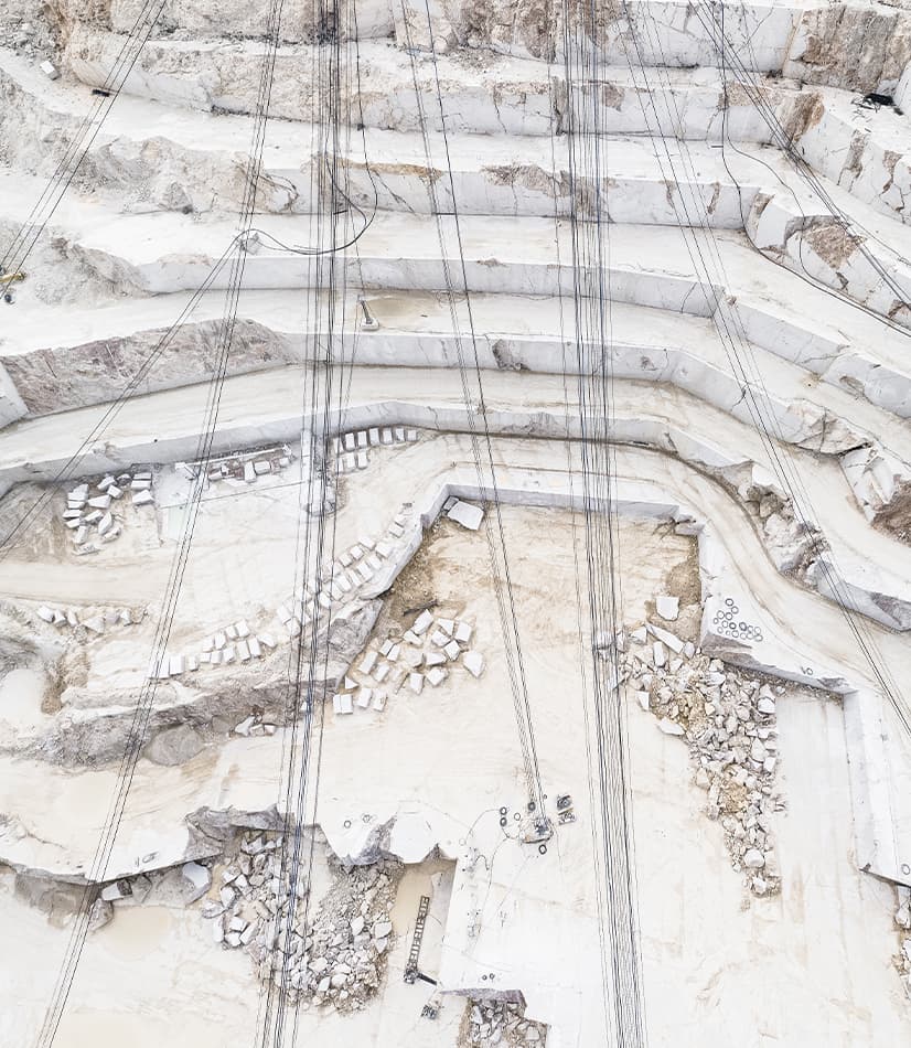The stone gracing St Peter’s Basilica in the Vatican and the Marble Arch in London can be found in luxury hotels and homes, used as flooring and stairs as well as surfaces for kitchens, bathrooms, and other spaces. Centuries of quarrying have created a distinctive landscape. From a distance, the pit mines appear covered in snow, even in the summer. Hundreds of active quarries and many more abandoned marble mines dot mountain ranges, reminders of man’s indelible touch on nature. The rugged landscape does not immediately come to mind when admiring marble. The many people who extract it are just as integral to its legacy as the artists who’ve sculpted with it and the architects who’ve erected monuments with it.