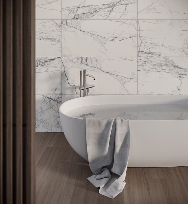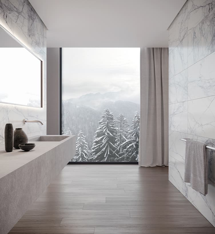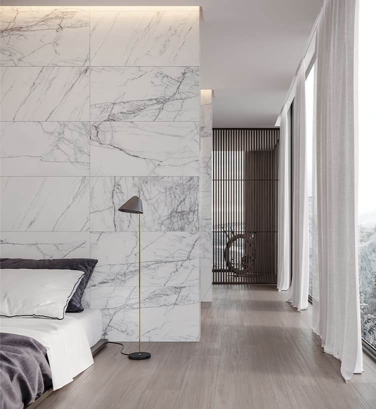 Un acabado llamativo y elegante que rezuma lujo y cuenta con vetas impresionantes. Lilac Volta combina la elegancia y esencia clásica del mármol blanco con la adición de una nueva y excéntrica energía, dada por acentos de vetas lilas que se alternan y se cruzan esporádicamente sobre un fondo blanco.