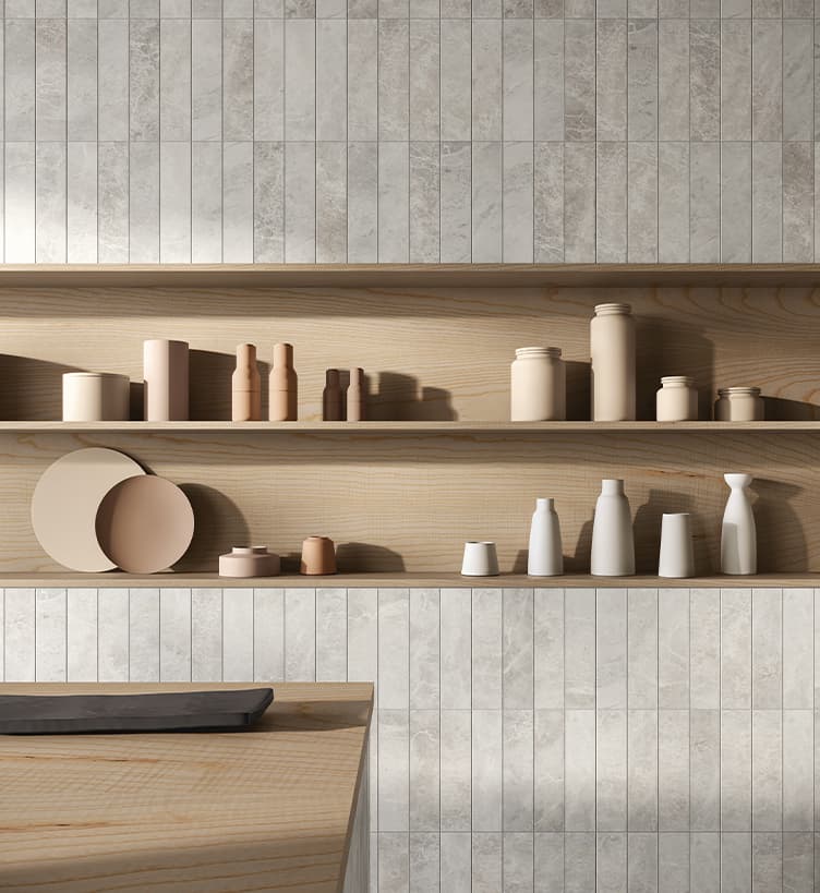 | 2 x 6 in / 4.9 x 15 cm Aura Fresca Picket Honed Marble Mosaic |