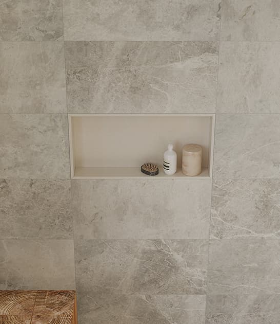 Nous avons une solution pour répondre à un besoin universel lors de la construction d'une salle de bains. Les concepteurs, les installateurs et les propriétaires ont toujours cherché une solution pour assurer la transition entre les carreaux de la salle de bains. Lors de la pose d'une douche ou d'une baignoire, il y aura toujours un endroit, comme la bordure de la douche ou un mur, où il faudra faire une transition entre les carreaux. Spécifiquement conçu pour la finition des bordures de douche et des seuils de porte, nous avons également créé des accessoires tels que des bancs de douche, des tablettes d'angle et des niches.