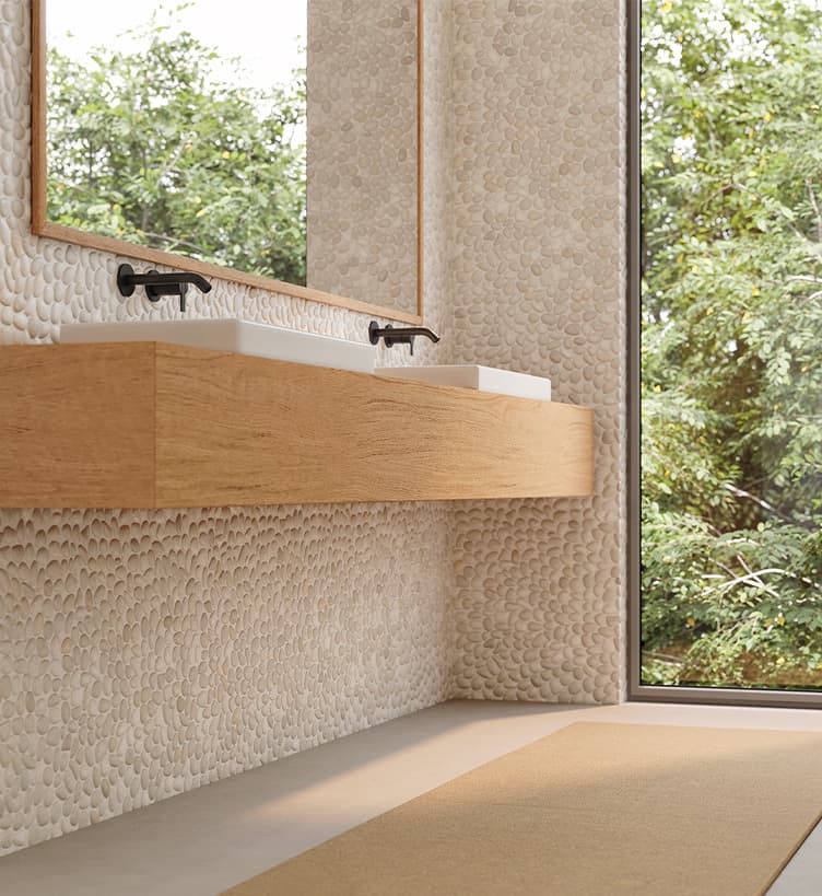 | Zen Serenity Ivory Flat Pebble Matte Mosaic |