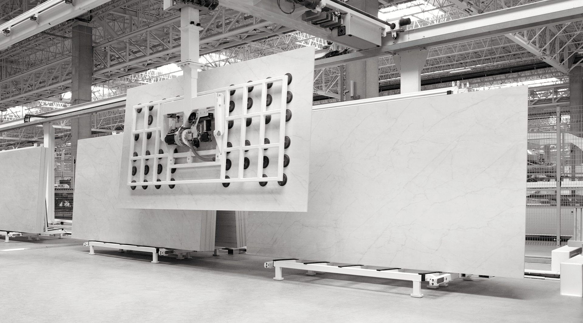 Ürünümüz bu işlemlerin ardından birinci sınıf yüzeyler elde etmenin bir sanat formu haline geldiği Leviga + hattına gidiyor. Bu özel makineler, taşın doğal zarafetini taklit ederek mükemmel yüzeyler oluşturuyor. Parlak ve reklektif yüzey isteyenler için Supershine teknolojisi tam da bunu sağlarken ek kazıma işlemleri ise doku ekleyerek doğal görünüm hissini artırıyor.