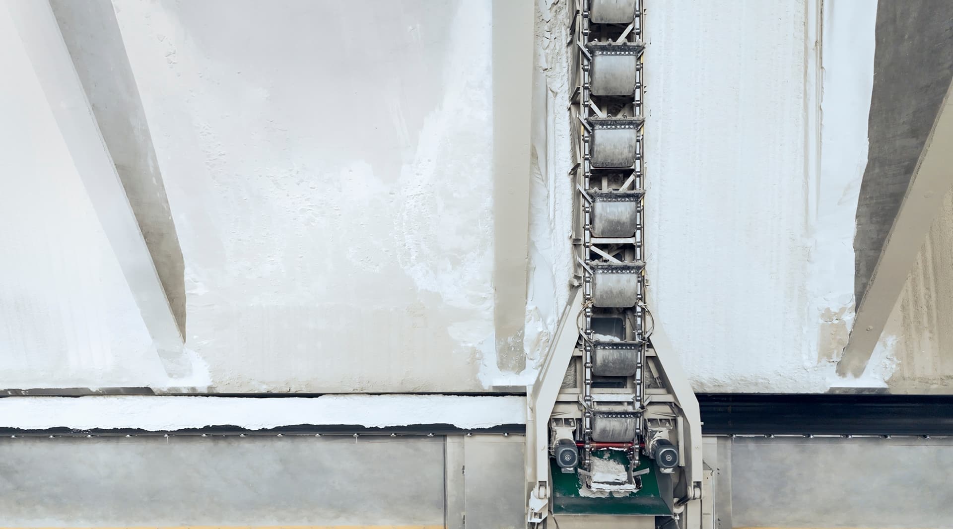 2 km’lik taşıma bandı ile kil, feldspat, kaolin gibi ham maddeler, özel olarak tasarlanmış, endüstrinin ilk kapalı ve tam otomasyon ile çalışan depolama sisteminde muhafaza edilmektedir. 84 depolama ünitesi ve 17 metre yüksekliğindeki geri kazanım sistemleriyle donatılmış olan bu sistem, ham maddelerin kontaminasyon riskine karşı güvenli bir şekilde depolanmasını ve üretimin sonraki aşamaları için en iyi koşullarda depolanmasını sağlıyor.