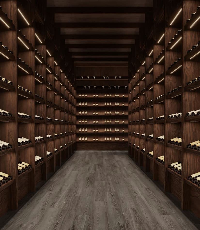 Zarif tonlar ve huzur veren ince çizgilerin oluşturduğu sofistike ruhuyla Anciano Grigio mermer duvarlar, alana dinlendirici bir hava katıyor. Gri mermer karolar, çok sayıda artistik uygulama düşünülerek tasarlanan etkileyici ve dinamik mozaikten oluşan Hydros Utopio Artistry Mosaics koleksiyonu ile hafif bir kontrast oluşturuyor. Doku ve renklerin dengeli bileşimine, sessiz kahraman Aspen Sequoia karoları damga vuruyor. Sırlanmış porselen içinde doğal parke ayrıntılarını harika bir şekilde yakalayan bu karolar, abartıdan uzak bir son dokunuş olarak şarap raflarının ve raf ünitelerinin tamamlayıcısı oluyor.