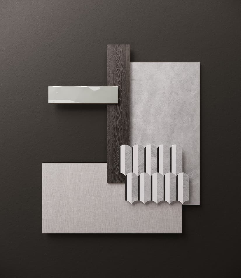 Dokuma kumaşın inceliğinden ilham alan ve sırlanmış porselenden oluşan Belgian Linen serisi, oluşturduğu sonsuz sıcaklıkla Anciano Grigio mermer duvarlardaki ustaca tasarlanmış geçişlerin ve hafif damarlı yapının etkisini artırıyor. Hydros mozaiklerinin döngüsel doğası, bir gelgit akımının kabarıp geri çekilmesini betimleyerek odada büyüleyici bir zarafeti gözler önüne seriyor.
