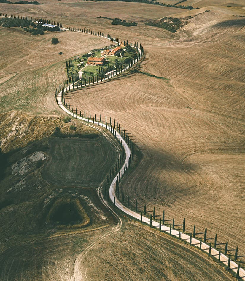 Toskana’nın kırsal kesimlerindeki yemyeşil üzüm bağları ve kıvrımlı akan akarsuların oluşturduğu manzarada araya giren tek şey, doğal taş ve kırmızı tuğlalı çatılarıyla dikkat çeken hoş görünümlü villalar oluyor. Doğal bej, kızıl kahve ve şarap kırmızısı tonlarından oluşan zengin renk paleti, sevdiklerinizle içeceğiniz bir iki kadeh şarabı daha keyifli bir hale getiriyor.
